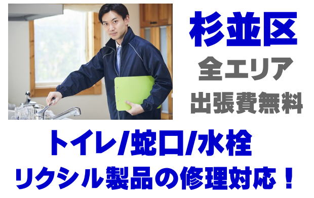 杉並区でLIXIL製(旧INAX)トイレの修理業者をお探しなら当社までお気軽にお問い合わせください。蛇口の水漏れ、シャワーの故障、トイレ便器の水漏れ、タンクの故障、便座の修理などリクシル製、イナックス製に関するトラブルなら何でもご相談ください。